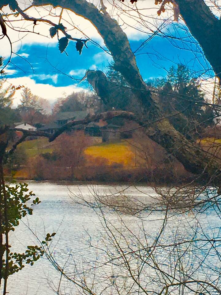It was a bitterly cold day with wind blowing, bundled up and layered so to enjoy a walk around the local lake. Of a sudden we came upon a Blue Heron simply being still in a tree gazing out at the lake that was filled (we were told by a fisherman nearby) with bountiful fish fit for a majestic bird.