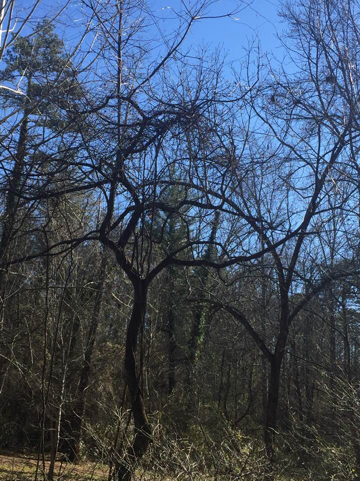 Having spent most of my life with palm trees in Southern California or evergreens of some sort in Northern California the bare limb Winter hardwoods of Western N. Carolina are bewitching me.