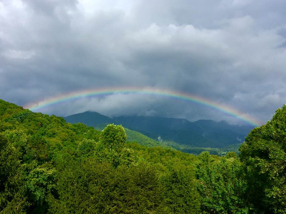 A brilliant rainbow presented in the sky over the Blue Ridge mountain range entwined with buckets of rain pouring down scattered here and there making driving a bit treacherous. I so wanted to capture it in a photo, but could not easily stop along the country road in a downpour so I trusted.