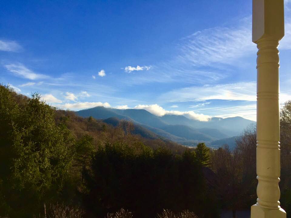 Sitting out on the front porch where I am house sitting I gaze at the sky, the mountains and the valley below. This is a familiar view for me as I lived here for the first three months after moving to N. Carolina and since then often visit with my friends and do the occasional house sit.